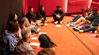 Our new Center for Education and Community Engagement can accommodate up to 45 students and chaperones. Moviehouse 1 can accommodate more than 400! We look forward to facilitating dialogue among students from multiple schools, classrooms, or disciplines simultaneously, so whether your class is large or small, you’re invited!
