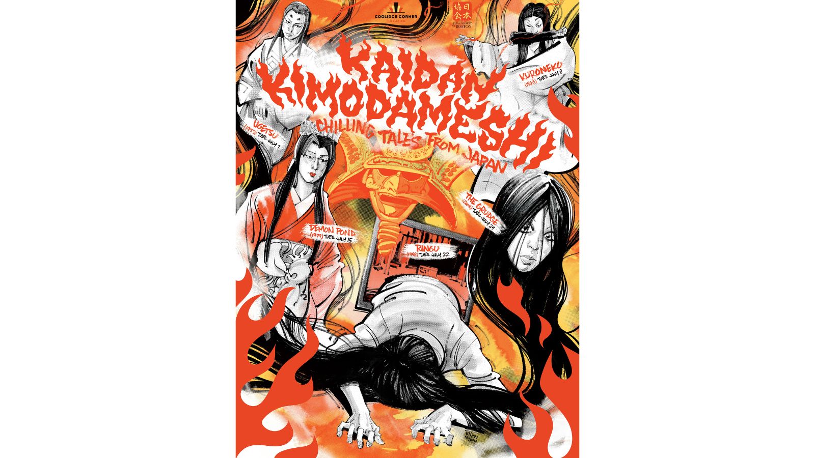 In partnership with the Japan Society of Boston, we’ve programmed five films from Japanese filmmakers spanning 50 years of supernatural storytelling. From Kenji Mizoguchi’s masterful Ugetsu (1953), to the folk-horror fantasia Demon Pond (1979), through 2004’s hair-raising Hollywood horror The Grudge, and more, "Kaidan Kimodameshi: Chilling Tales from Japan" will certainly send a shiver down your spine this summer!